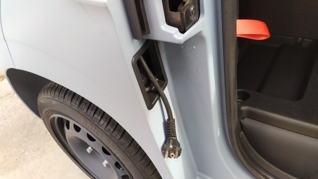 Важливий момент в такому авто - запас ходу на одній зарядці, та сам процес зарядки. Зважаючи на обмеження швидкості та відсутність додаткових споживачів енергії можна сміливо розраховувати на 75 км пробігу. А от зарядка Амі - процес не швидкий. В цього електромобіля всього один варіант заряджання. В пройомі правих дверей в ніші сховано довгий 3-метровий дріт зі звичайною вилкою на кінці. З її допомогою машина підключається до мережі, та за 3 години машина повністю зарядиться. Проте, якщо Citroen Ami буде використовуватись в службах доставки, то він може протягом дня використати свій запас ходу. І в такому випадку Амі буде на довго «прив’язаний» до розетки. Для такого авто було б добре мати можливість більш швидкої зарядки. Інша біда, що навіть просту розетку для підзарядки в місті знайти не так вже й просто. Мережі зарядних станцій для електромобілів практично відмовились від встановлення звичайної розетки. Саме тому для німецького побратима-близнюка Сітроєну Амі, який отримав назву Opel Roks-e, пропонують адаптер «з Type2 на розетку 220 В». Такий пристрій дозволить увімкнути та зарядити маленький електромобіль в будь яку комерційну зарядну станцію для електромобілів, що оснащена роз’ємом Type2. А таких по місту чимало.